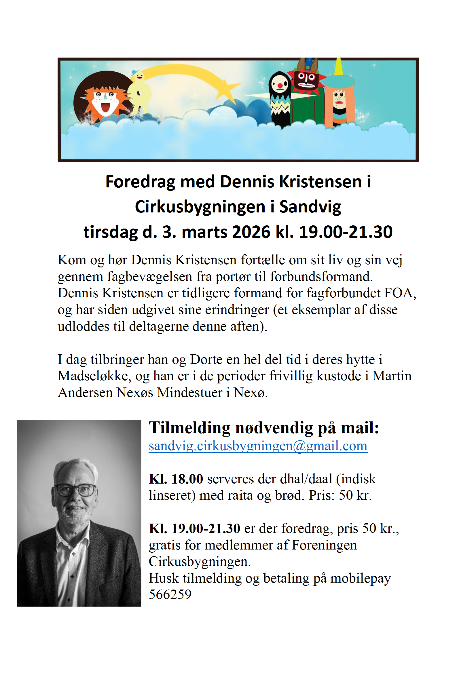 Du er her:Det sker > Foredrag med Dennis Kristensen i Cirkusbygningen i Sandvig