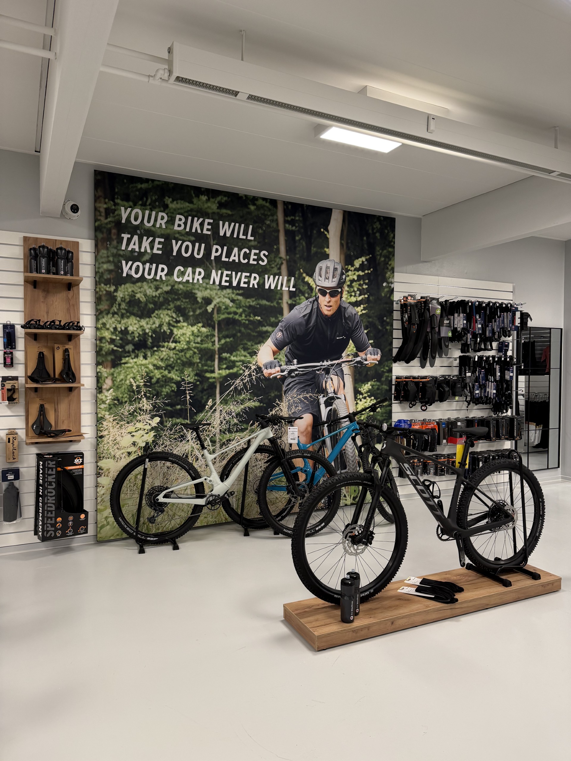 Hos Fri BikeShop Bornholm kan du nemt parkere din bil eller cykel helt gratis lige foran butikken.