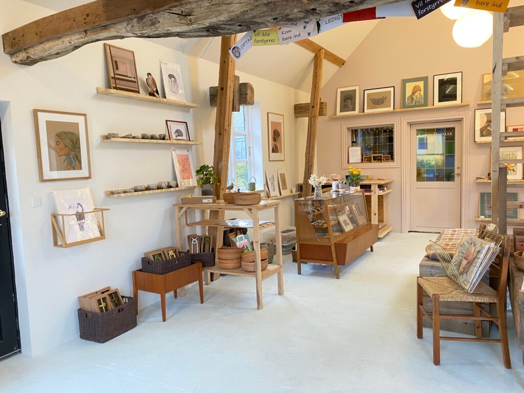 Kom ind i min hyggelige lille butik i Hasle, hvor du kan købe min skønne kunst og tegninger, samt et udvalg af lækre ting til din bolig og dine planter.
