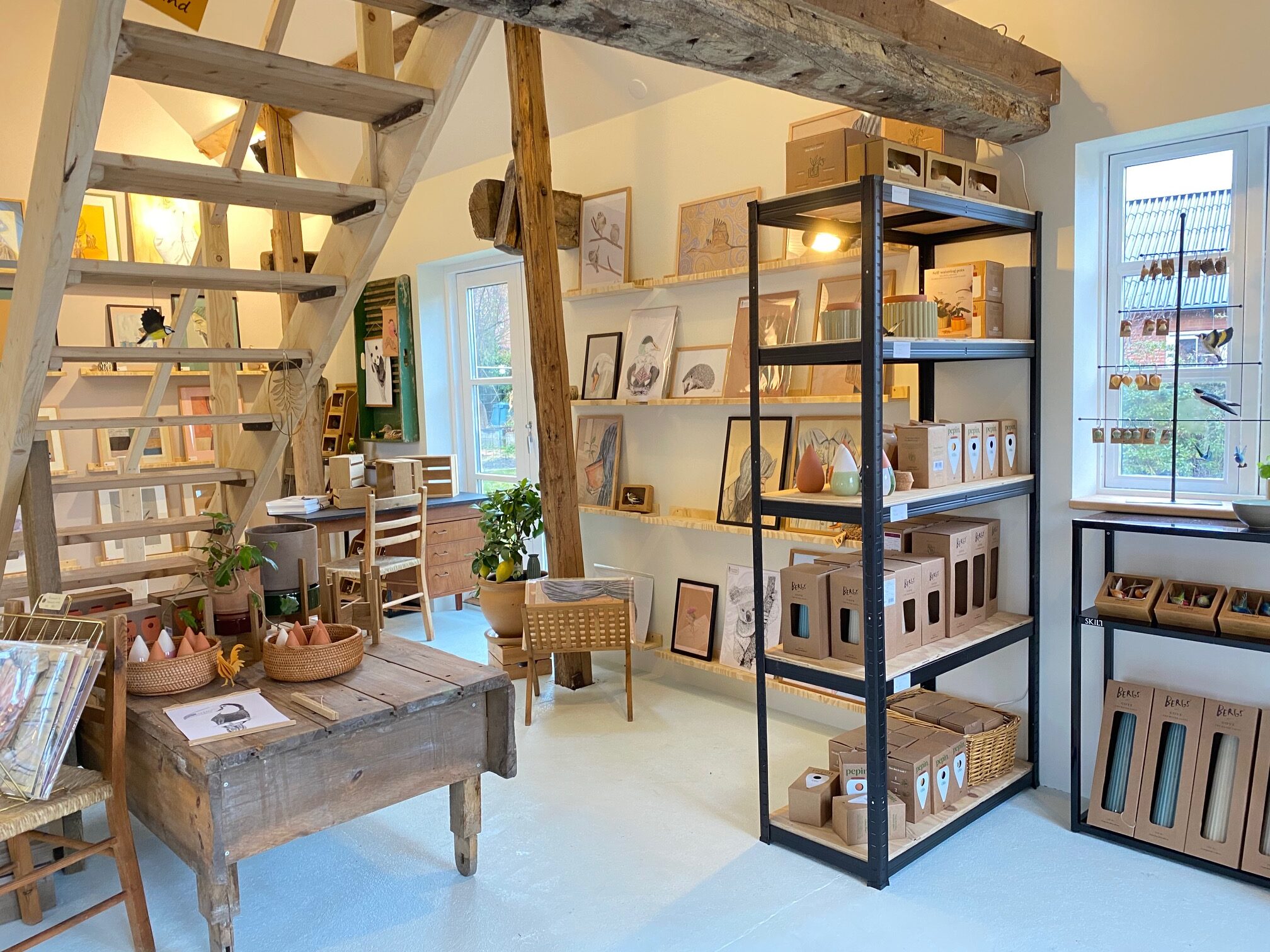 En hyggelig lille butik med håndtegnet kunst og boligpynt. Her finder du smukke planteholdere og fine selvvandingsting til dine potteplanter. Butikken byder også på andre små ting såsom udskårne træfugle, rammer, uroer og hånddrejet keramik